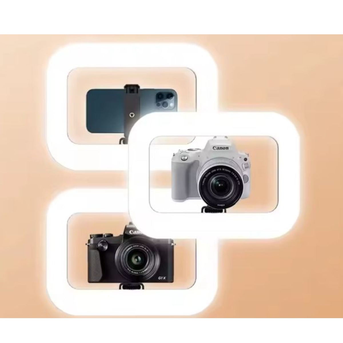 El Cuadro De Luz Led Portátil 20W es la herramienta ideal para quienes buscan una iluminación profesional en sus proyectos de fotografía, maquillaje y grabaciones en vivo. Su diseño compacto y ligero permite transportarlo fácilmente, mientras que su soporte para celular asegura que puedas capturar el mejor ángulo en todo momento.
