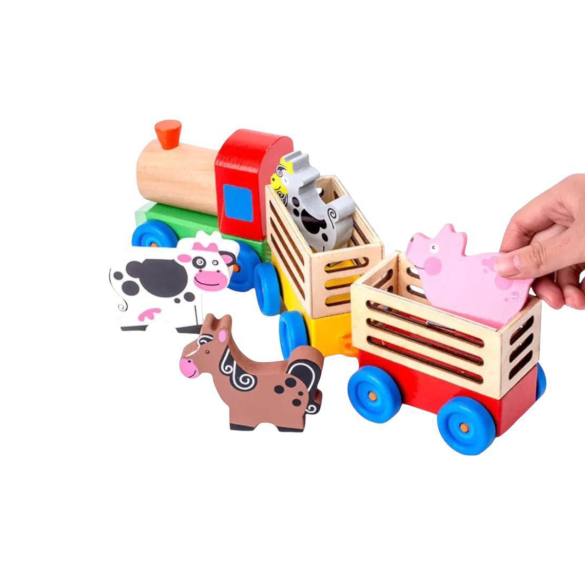 Tren Juguete De Madera Didactico Granja Y Animales Animales Varios